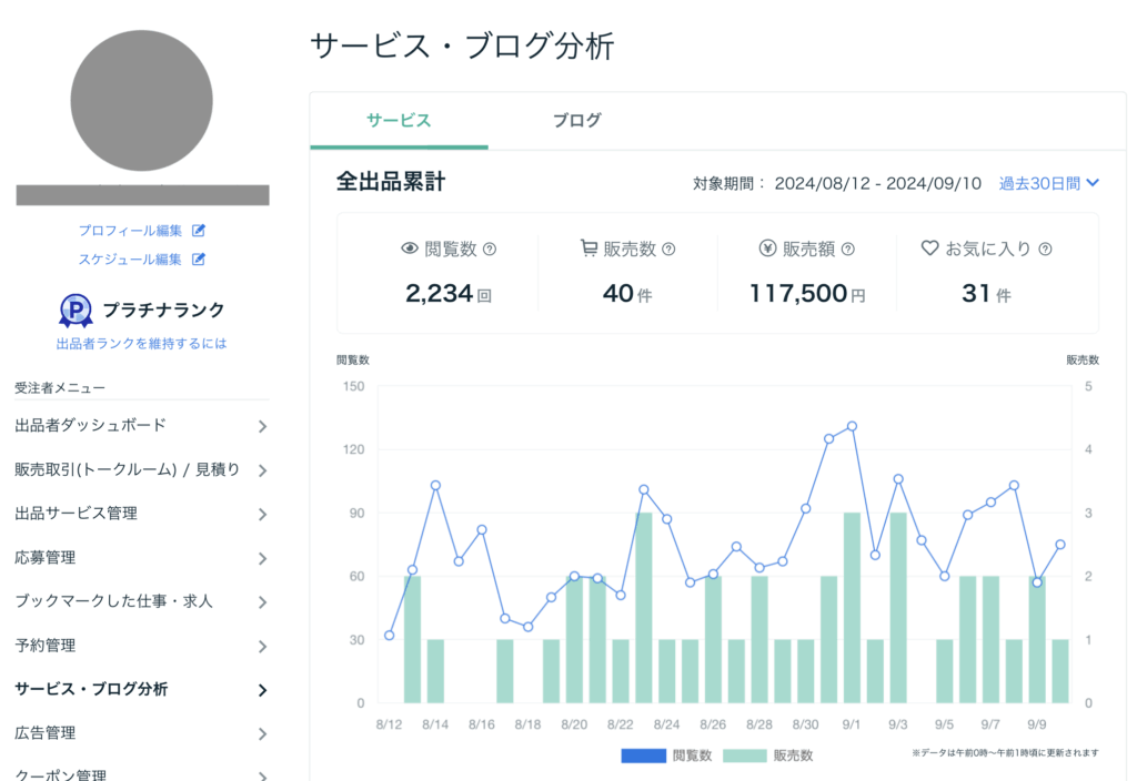 さらに、ココナラで最短の早さでプラチナランクを獲得できました。